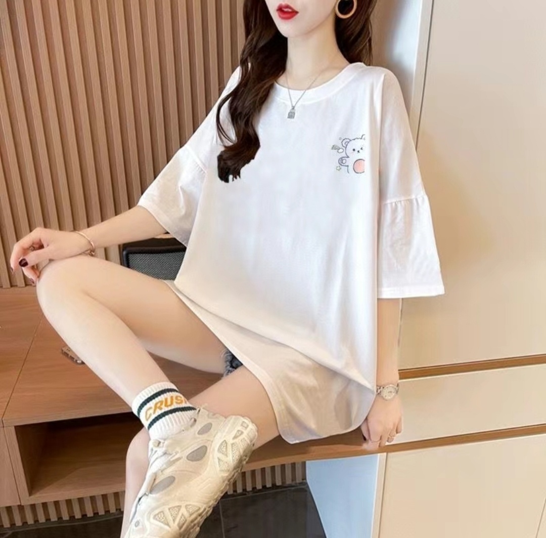 Дополнительные размеры на 6 XL: длина 76 см, объем груди 140 см, длина рукава 23 см. Вырез круглый. Хлопок.