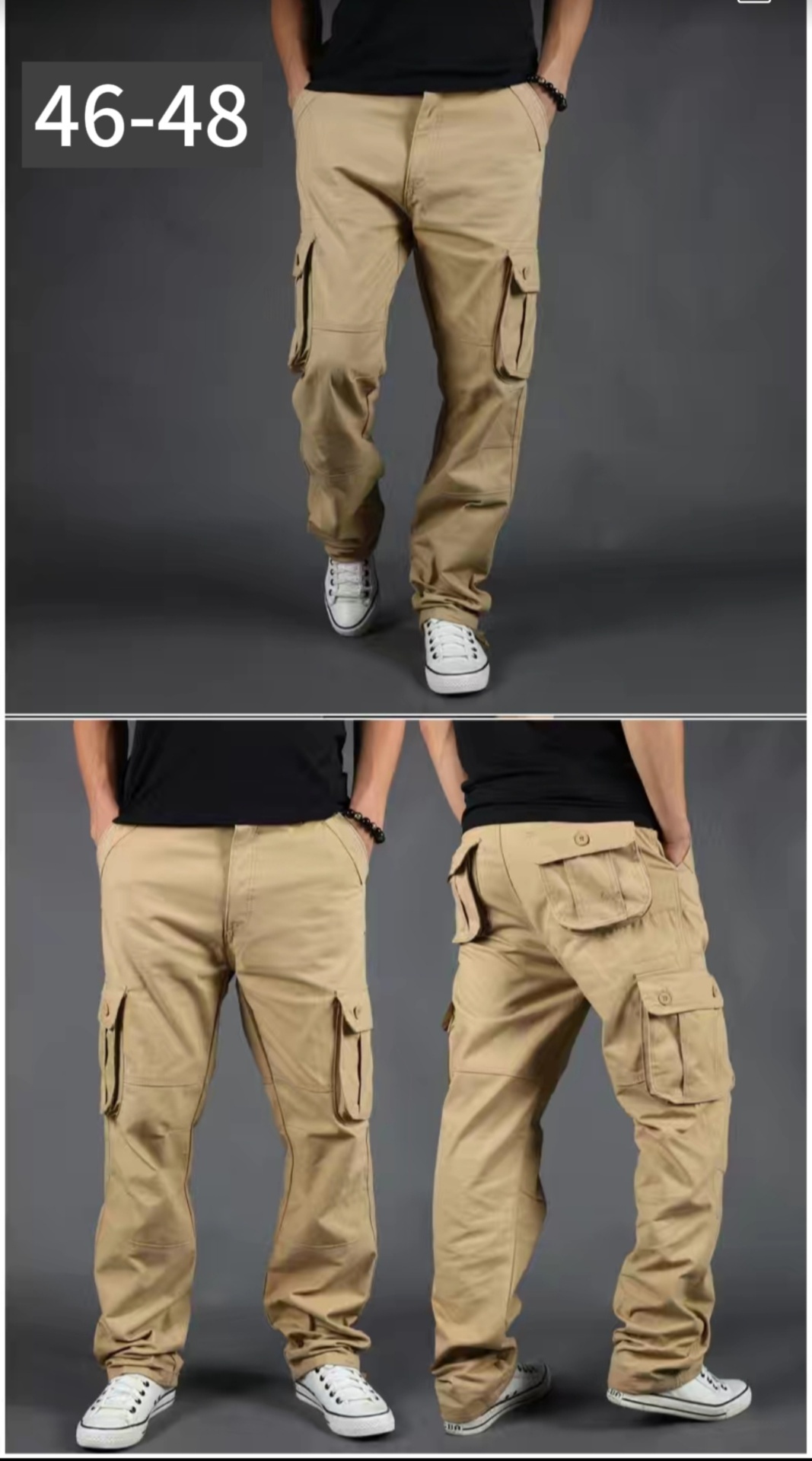 Карго-модель – прямые хлопковые брюки с высокой посадкой, стильные и комфортные для повседневного ношения. Зиппер и пуговицы обеспечивают надежную фиксацию. Украсят образ своей универсальностью и подходят для демисезона. Из Китая; рост модели на фото – около 175 см., идеальный вариант при весе примерно 80–85 кг. Стильный акцент вашего гардероба!